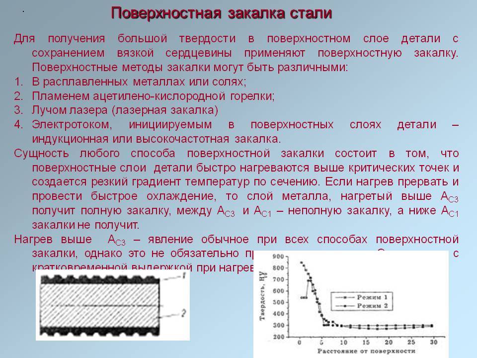 В зависимости от формы, размеров и глубины слоя закаливания используют такие режимы закалки ТВЧ: