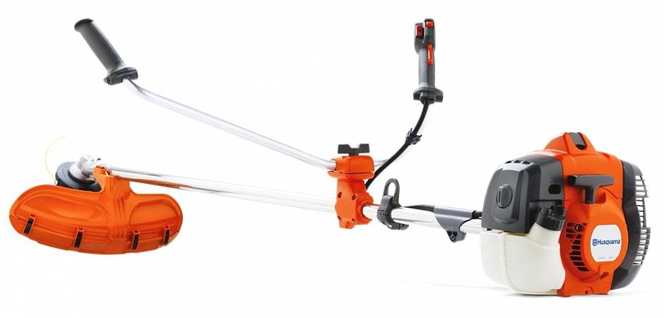 Эта модель оборудована ручкой, высоту которой можно регулировать. Корпус и дека пластиковые. Форма рукоятки – D-образная. В комплект входит: плечевой ремень, нож, 3.5 мм леска.