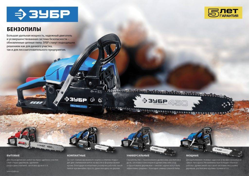 - Компания Зубр предлагает расширенную пятилетнюю гарантию на все бензиновые пилы своего производства.