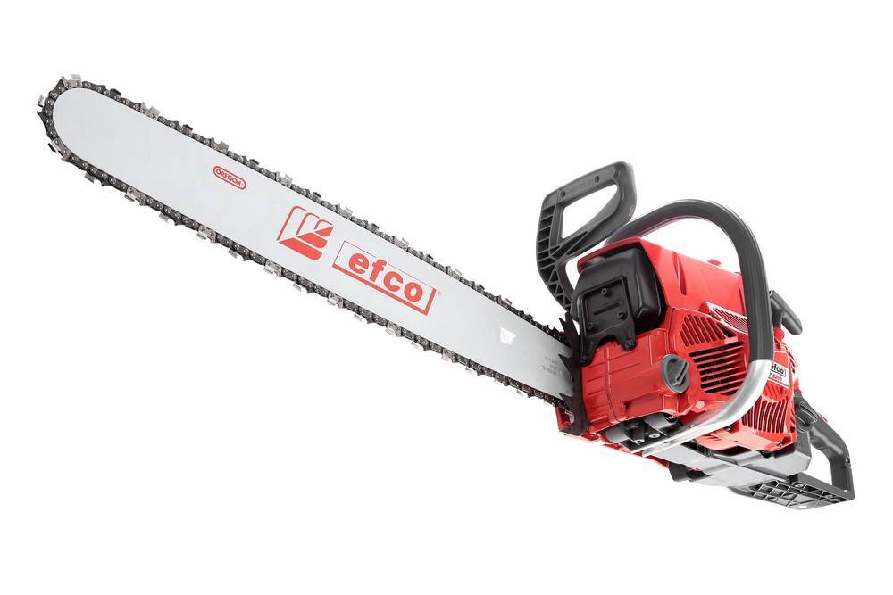 Лучшим бензиновым инструментом в рейтинге является пила от итальянского изготовителя строительного оборудования EFCO. Данный вариант универсальный. Подходит для промышленных задач, строительных работ, лесоповала и даже для мелких хозяйственных нужд. Главная особенность пилы в том, что в ее конструкции предусмотрен декомпрессор. Благодаря узлу завести аппарат сможет даже неумелый пользователь. Основные элементы управления находятся на одном захвате, поэтому пользоваться инструментом будет удобно. За быстрое охлаждение механизма отвечает уникальная электронная катушка. Пиле EFCO MT 8200 характерна надежная защита от вибрации и легкий вес.