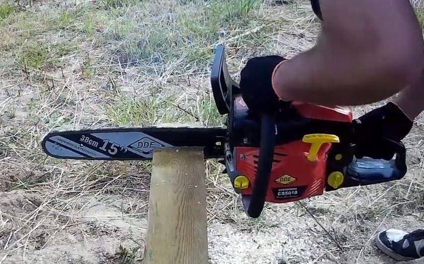 Производительность пилы ДДЕ впечатляет. Она может беспрерывно работать в течение нескольких часов, распиливая объемные стволы. Инерционный тормоз обеспечивает безопасность во время работы с пилой. Он за секунды останавливает изделие, если есть риск выпадения шины.