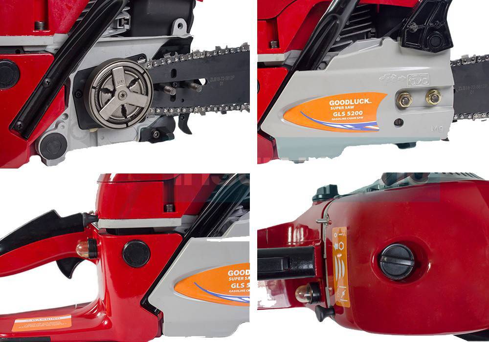 Модель «GoodLuck» отличается экономичным расходом топлива и масла, имеет увеличенный объем заправочных емкостей, высокую надежность основных рабочих узлов. Разработчики улучшили систему защиты, контролирующую процесс выполнения распила. Предусмотрена остановка цепи, в случае возникновения аварийных ситуаций. Мастер, работающий этой пилой, надежно защищен от обратного удара.