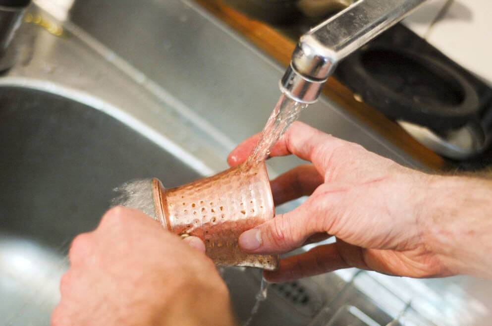 Чистить медные изделия требуется регулярно, и начать стоит с обычного промывания средством для мытья посуды и водой. Нередко такой уход помогает вернуть вещи былую красоту.