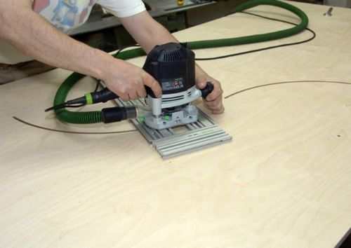 Оползни от контура могут быть до четыре мм. Потом эти несколько мм убирают цилиндрическим фрезой при помощи ручного электронного фрезера с подшипником. Подшипник направляют вдоль длинноватого уровня, закрепленного на обороте листа.