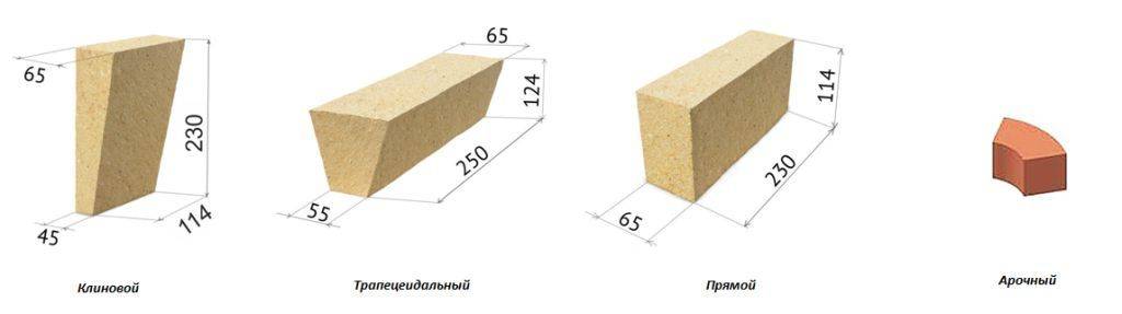 Самым популярным является шамот прямоугольной формы, при возведении арочных конструкций незаменим кирпич клиновой.