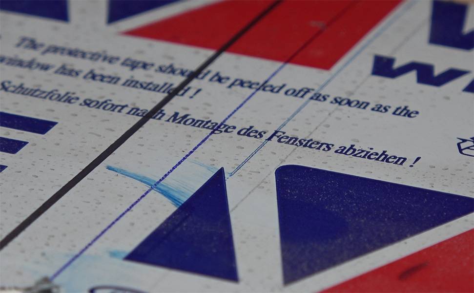 Родная заводская пленка скользкая. По ней тяжело начертить линию.