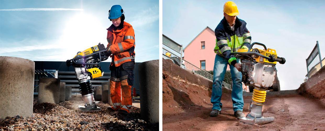 Для ямочного ремонта дорог нужны тяжелые машины от 100 кг и внушительной силой удара от 15 кН. За счет большого веса эти машины уже нельзя использовать для укладки плитки и брусчатки. Обязательна система орошения и реверсивность машины, поскольку аппарат весом более 100 кг будет не так просто развернуть на строительной площадке. Аппарат этого класса пригодятся для промышленного строительства домов и автодорог.