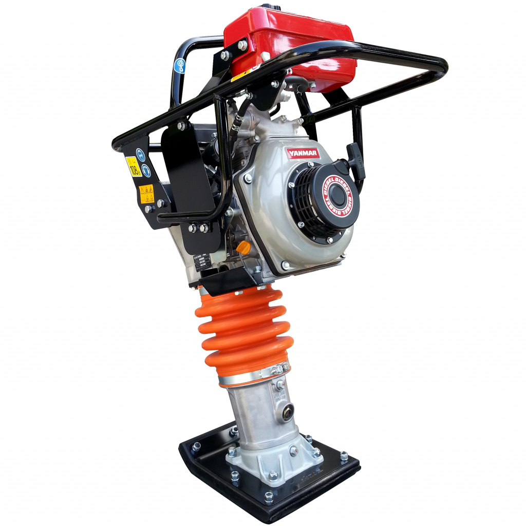 Виброплита имеет интересный форм-фактор с узкой подошвой 34х28.5 см, размещенной на высокой амортизационной стойке В профессиональной среде ее называют “виброногой”. Рама из труб имеет форму квадрата и расположена сверху. На ней закреплен двигатель с объемом 219 см³, генерирующий 4.2 л.с. Несмотря на относительно малые габариты 1010х410х740 мм аппарат наносит 700 ударов с силой 15.7 кН. Мотор Yanmar L48N очень простой и выносливый. Отзывы показывают, что он легко запускается даже при отрицательных температурах.