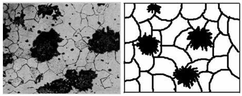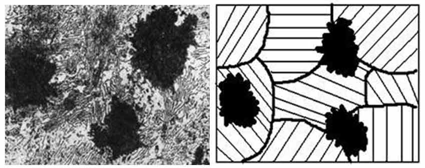 Высокопрочный чугун это вид серого чугуна, в котором графитовые образования имеют шаровидную форму. Из-за такой округлости включений кристаллическая решетка становится не склонна к образованию трещин.