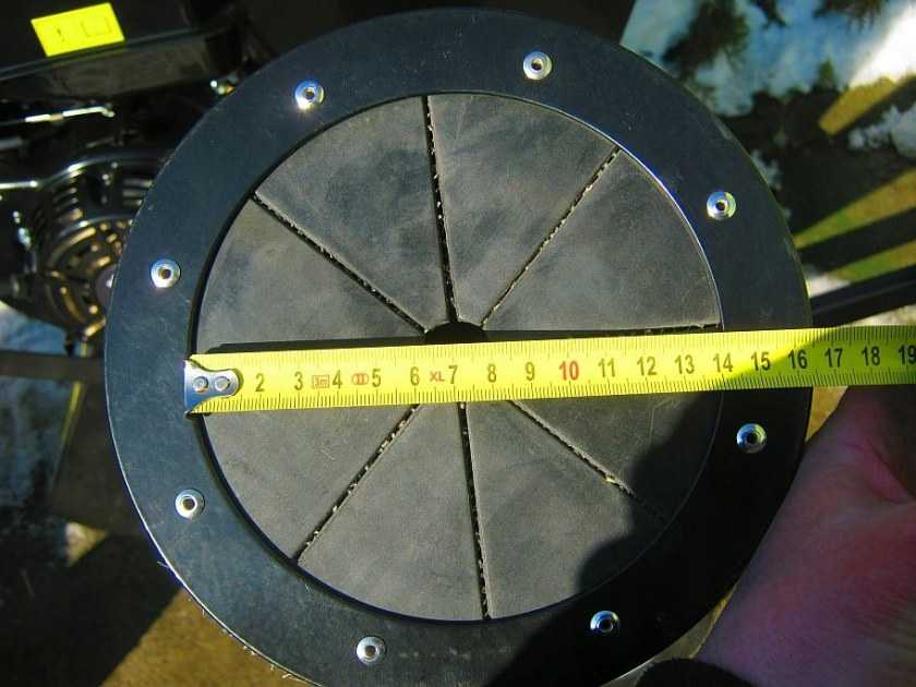 - Когда на оси будут закреплены и разведены диски, устанавливают шкив. Его можно позаимствовать у генератора отечественного автомобиля. Для того, чтобы шпилька вращалась, необходимо использовать два подшипника диаметром 2 см.