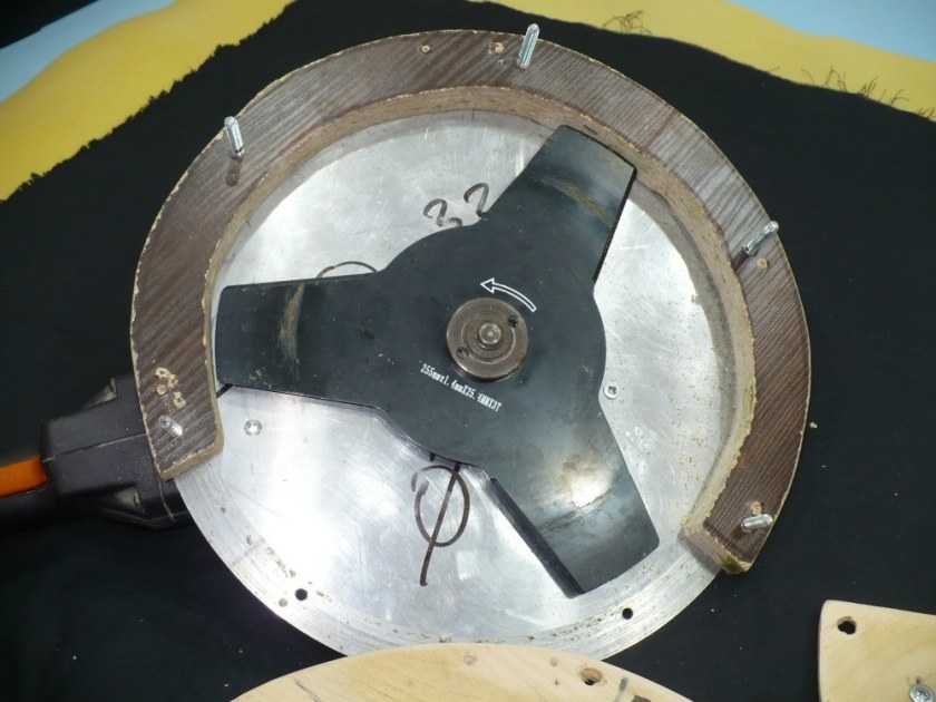 Последним действием считается присоединение режущего блока с валом мотора при помощи ремня. Все, конструкция сделана.