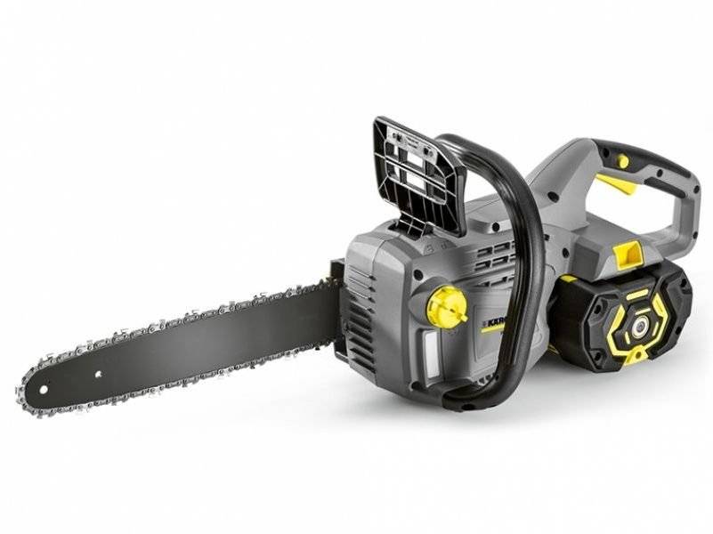 Отличием модели является небольшой вес, что позволяет с комфортом функционировать с инструментом. В устройстве небольшая шина – 30 см. Оборудование подходит для подрезки кустарников, бревен и для спиливания толстых сучьев. В наличии опция торможения, которая обеспечивает пользователю защиту от травм. Во время работ агрегат не создает шума, а компактные размеры позволяют размещать аппарат в багажнике автомобиля и даже в рюкзаке.