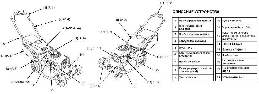 - Устройство газонокосилки “Хонда”, порядок сборки агрегата (картинки, схемы, описания прилагаются).