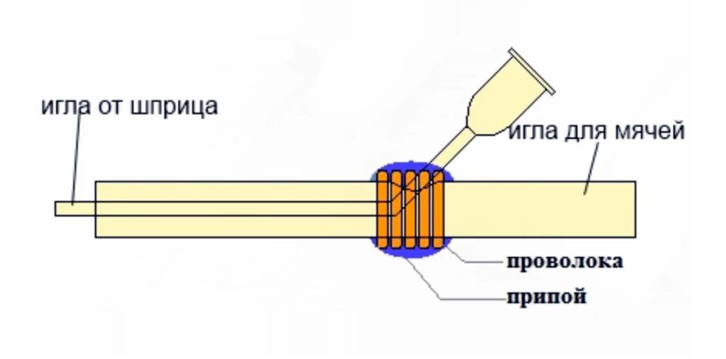 В большой игле делаем отверстие (надрез) и пропускаем через него изогнутую медицинскую (острый её кончик стачиваем). Это место для герметизации заматываем медной проволокой и запаиваем (уже напоминает газовую горелку?). Осталось обеспечить подачу воздуха от компрессора и пропана от баллона. Зажимы-ограничители на трубках капельницы будут осуществлять регулировку пламени резака. Остальное предлагаем вам продумать самостоятельно и у вас получится газовый резак своими руками.