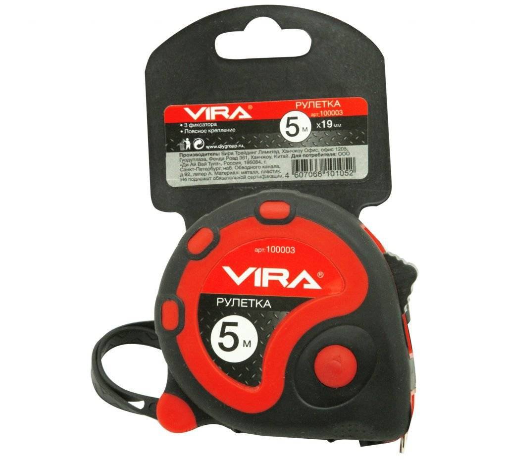 Универсальное устройство от российской компании для бытового и профессионального применения с металлической лентой длиной 5 м и тремя фиксаторами. Ширина полотна 19 мм. Тип шкалы — сантиметровая. Защитное покрытие позволяет работать с устройством в любую погоду. Для изготовления корпуса использован пластик. Модель оснащена поясным креплением в виде клипсы, что упрощает транспортировку. Имеется также петля для ношения рулетки на руке.