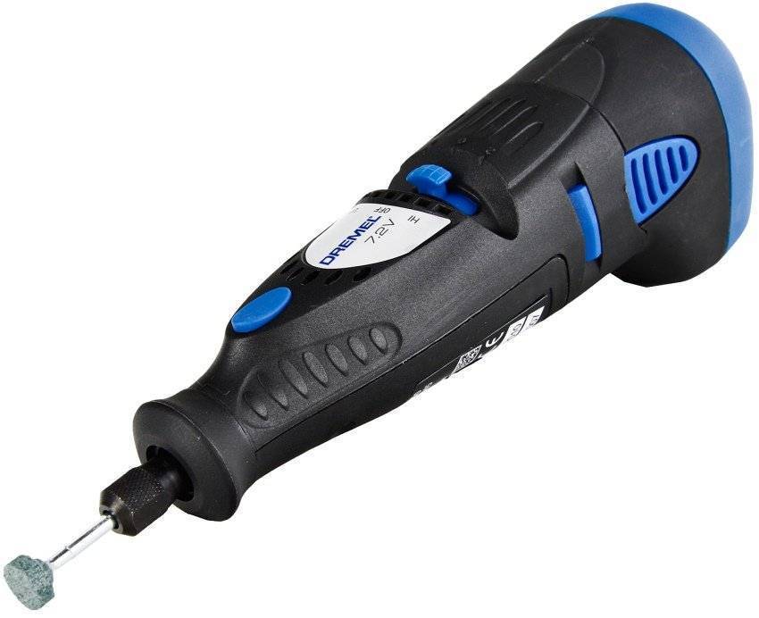 - Аппараты с вращающейся рабочей частью. Это уменьшенный вариант электродрели. С помощью такого инструмента можно сверлить отверстия, фрезеровать, шлифовать, делать заточку.