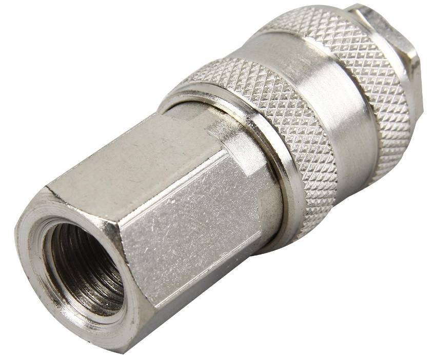 - Внутри устройства есть запорный элемент, который не позволяет воздуху двигаться в обратном направлении или выходить наружу. Именно поэтому ниппель применяется в случае, когда на момент нагнетания воздуха следует проводить быструю смену насадки.