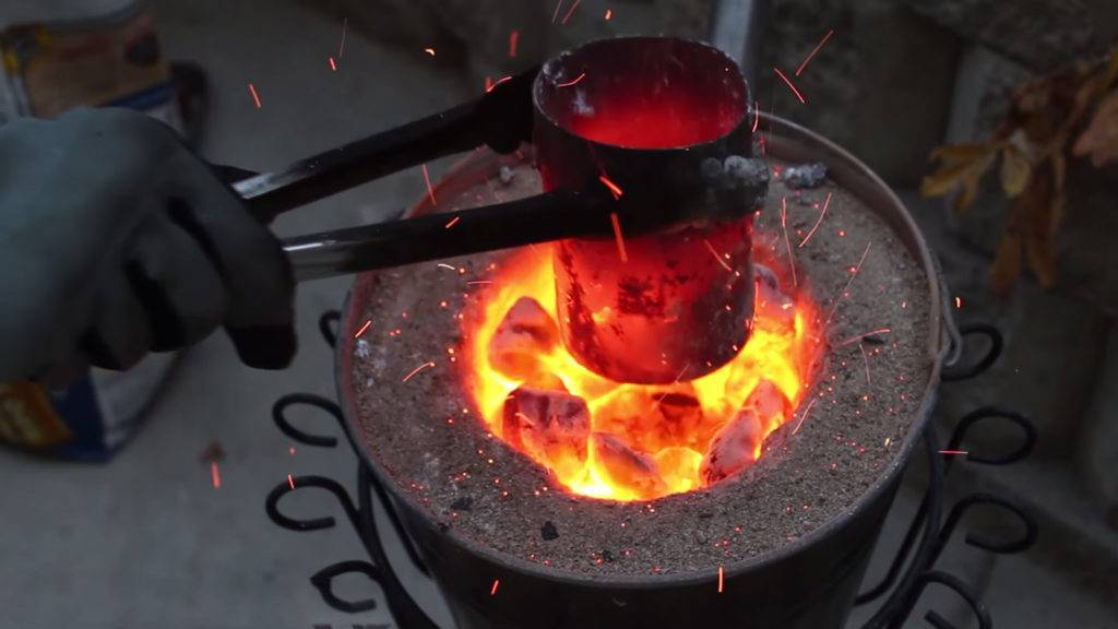 Для этого используются индукционные или дуговые печи. Также в качестве источника разогрева можно использовать газовую горелку или паяльную лампу. Если устанавливается глиняная печь, то подготавливается горн, уголь и щипцы.