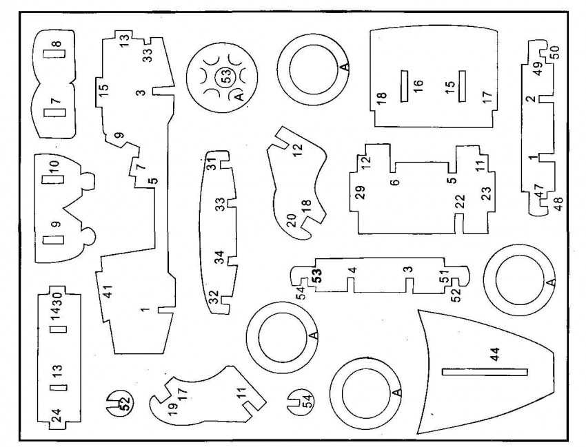 - Закрепите пилку в лобзике и начинайте выпиливать элементы танка;