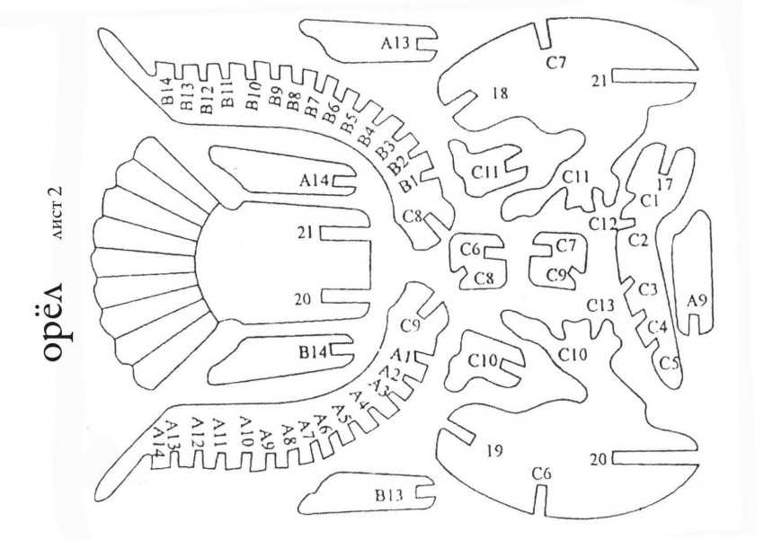 Сложные поделки из фанеры лобзиком имеют чертеж с такими данными: