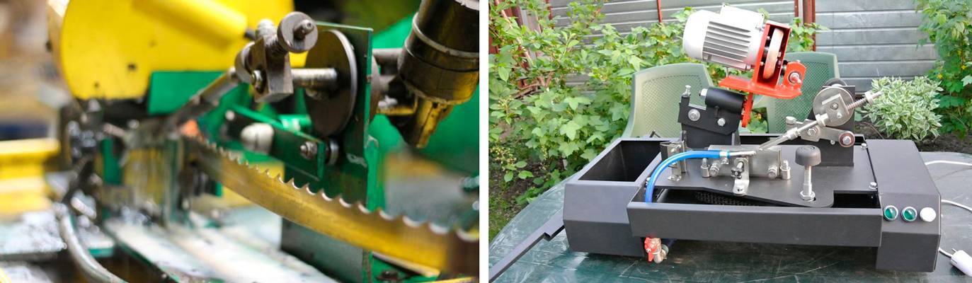Выбор подходящей модели заточного станка обусловлен параметрами имеющейся ленточной пилы. Необходимо рассматривать оборудование, способное обрабатывать такие ленты, обладающее соответствующими характеристиками (шаг зубьев, толщина ленты, длина петли и т.п.). Подобрать подходящий станок для одной ленточной пилы несложно.
