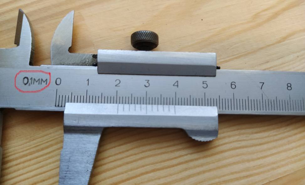 Точность измерений определяется разметкой нониуса – до десятых или сотых долей миллиметра. Эта же цифра указывается на самом приборе в виде вот такой маркировки.