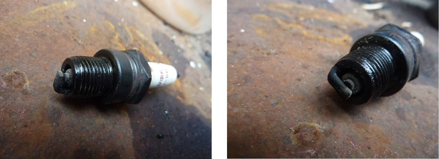Свеча тестируемой бензопилы «Урал» представляла собой, вообще говоря, ужасное зрелище: