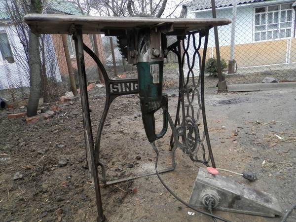 Для создания маленькой пилы стоит применять такие же правила, что и при создании устройства из болгарки. Но в этом случае в качестве подставки стоит применять не козлы, а станину. На нее нужно установить небольшой стол с зафиксированным инструментом.