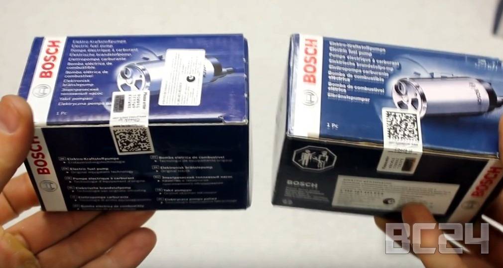Когда в первый раз возьмешь коробки с бензонасосом БОШ в руки, сразу очень трудно сказать — где оригинал, а где подделка? Цветовая гамма, все наклейки и картинки идентичны у подделки с оригиналом.