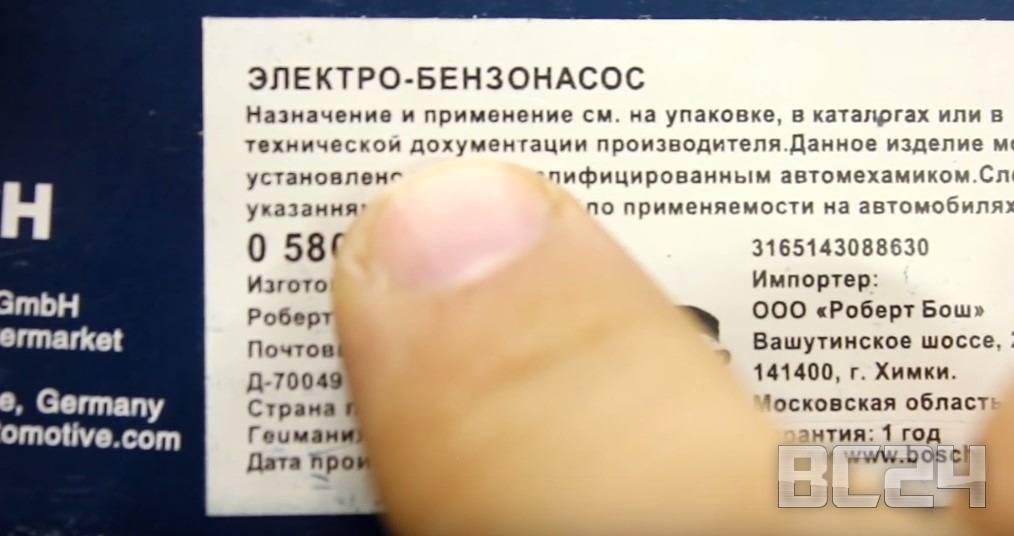 Вот как выглядит бензонасос оригинальный с артикулом, логотипом фирмы и страной производителем.