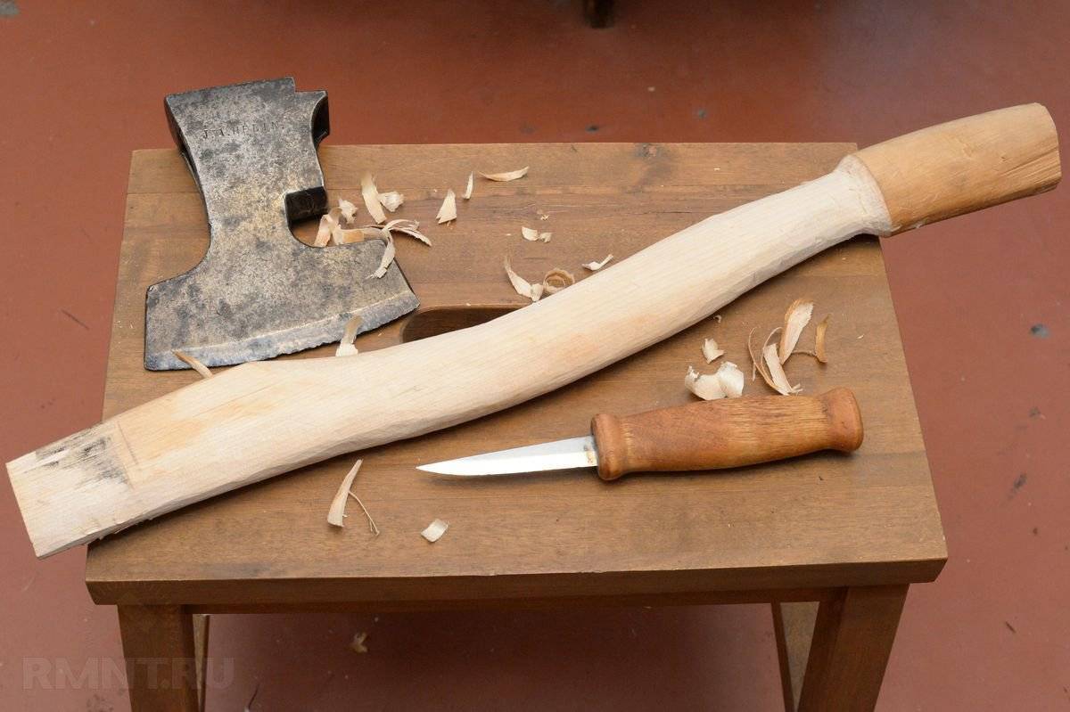 Важно! Древесина для топорища обязательно должна быть хорошо просушенной. Если заготовка делается вручную в зимнее время, то обязательно перед насадкой следует подержать её в тепле два-три дня. Конечно, чаще всего покупаются готовые топорища
