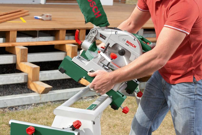 Пильный стол можно приобрести в комплекте с торцовочной пилой, что позволяет не только удобно работать с инструментом, но и повышает уровень безопасности, поскольку крепления специально разработаны и подогнаны под определенную модель
