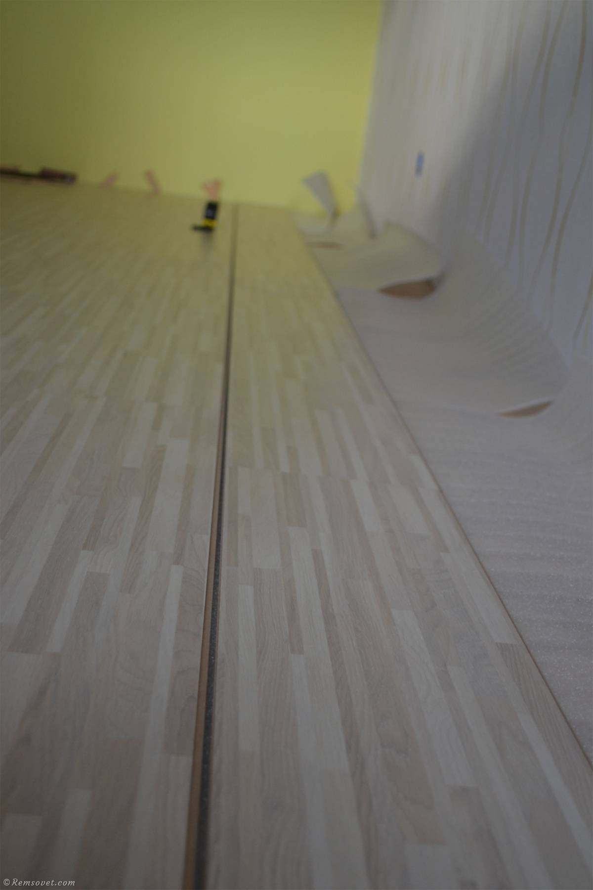 Совет № 1. Выбрав направление укладки необходимо точно измерить ширину помещения и убедится, что последняя полоса по ширине будет больше 5 см. Если получается менее, то первую необходимо укоротить.
