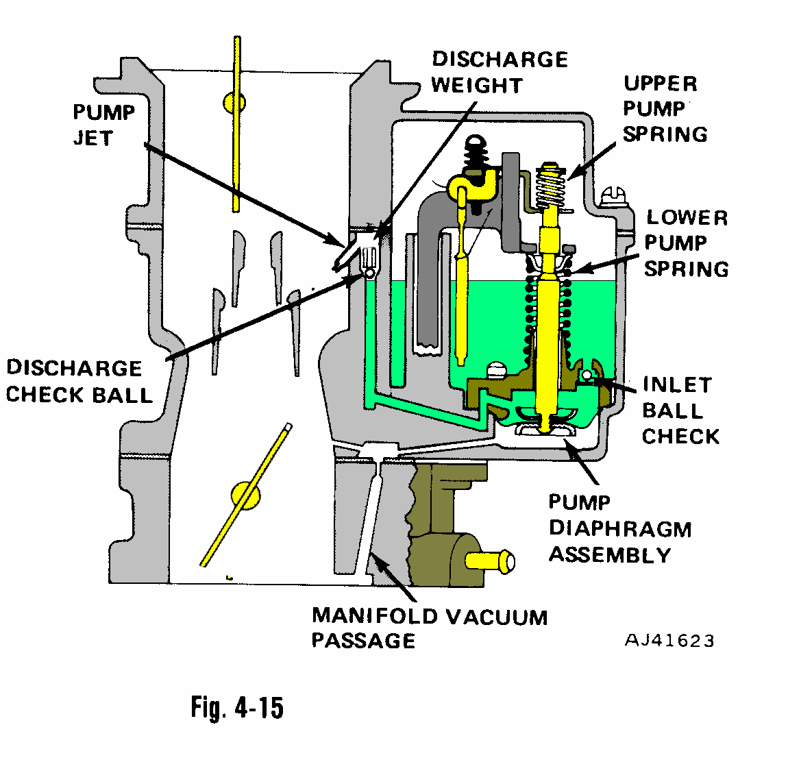 - Топливная смесь при заполненной камере подается (засасывается) через жиклеры холостого хода и средних оборотов (когда двигатель запущен)