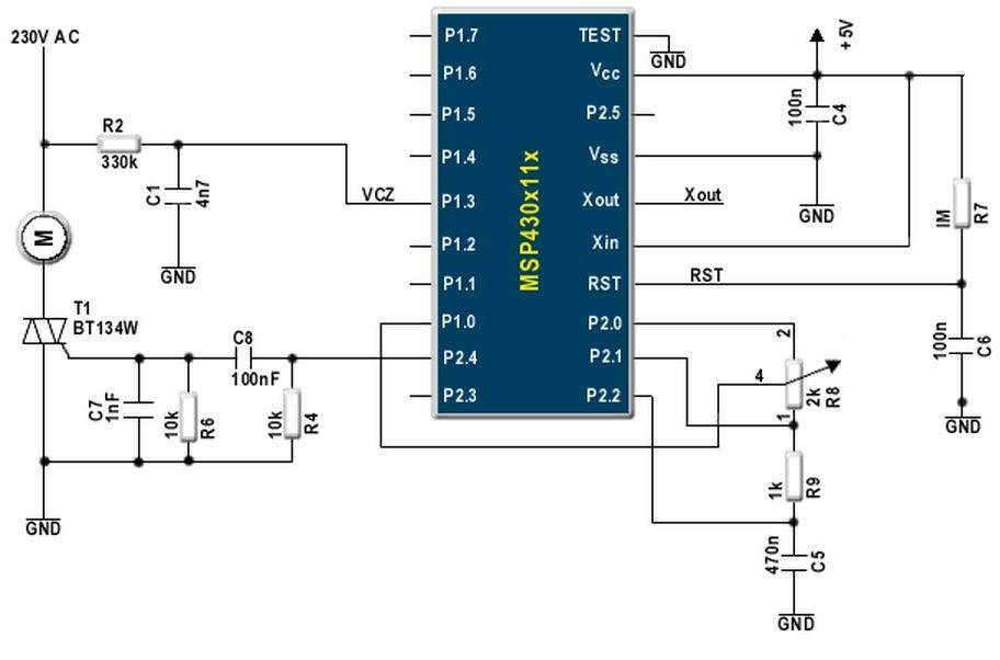 Электросхема регулировки оборотов с применением микросхемы КР1182ПМ1