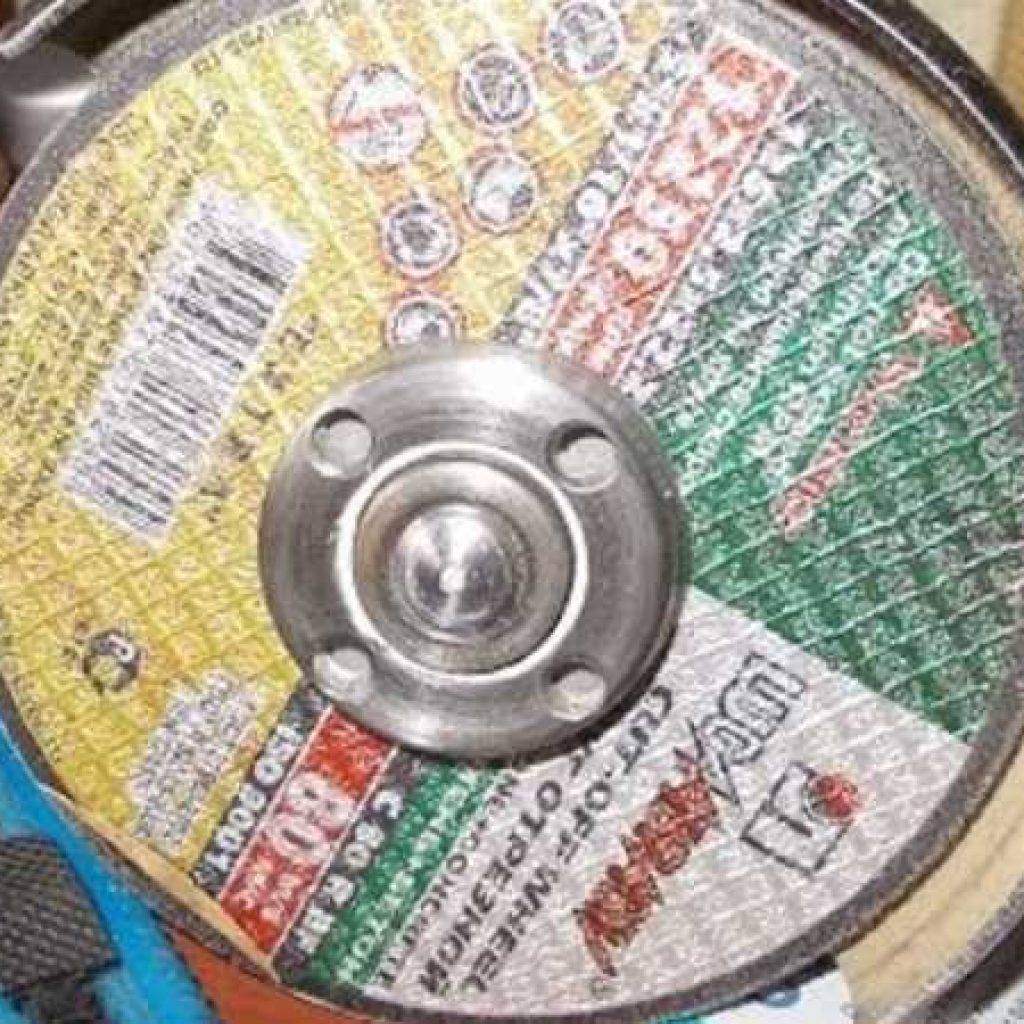 С той стороны, на которую наклеивается этикетка, ставится широкая прижимающая шайба, на неё и повлияет подвижная гайка при закручивании (установке диска). По полированной поверхности шайбы гайка скользит, без неё закрутить либо откручивать станет сложнее, потому что абразив будет крепко задерживать гайку и будет нужно большее усилие. Это в особенности принципиально если требуется стремительная подмена диска либо произошла его поломка (заклинивание).