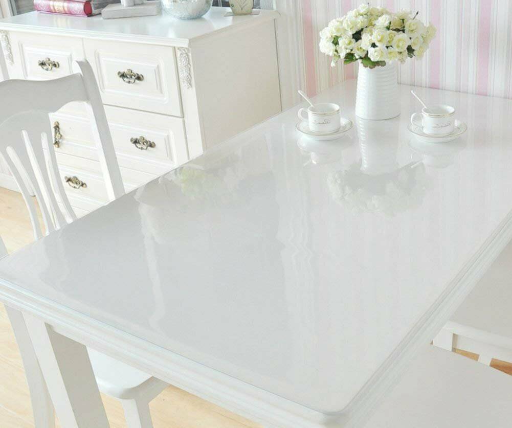 Положив такую прозрачную скатерть “мягкое стекло” на поверхность стола, можно быть уверенным в том, что продуктовые крошки и средства бытовой химии не будут наносить ей ущерб, а красители и капли жира не будут впитываться в поры. Использование такой скатерти существенно продлит эксплуатационный период столешницы.