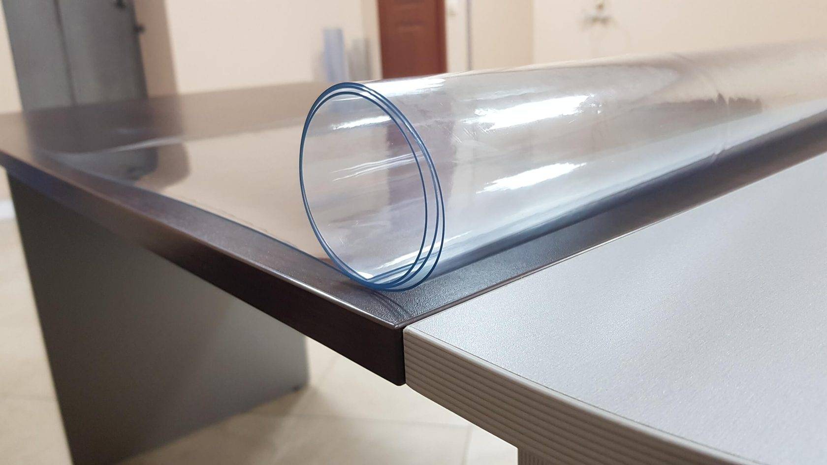 Варианты использования гибкого стекла в качестве защитно-декоративного покрытияГибкая ПВХ пленка отлично сбережет стеклянную столешницу от сколов и возможных царапин. Кроме того, такая скатерть станет защитой для хрупких стеклянных поверхностей. На стеклянной столешнице тонкое ПВХ стекло будет совершенно незаметно.Для кухонного стола гибкое стекло значительной толщины станет защитой от жира, пролитых жидкостей, красящих продуктов вроде свекольного сока. Именно гибкая скатерть существенно продлит срок службы кухонной столешницы.На любых пластиковых или деревянных столах мягкая ПВХ скатерть из пленки средней толщины создаст надежную защиту от грязи, царапин и подобных повреждений. Столы в детской получат абсолютную и долговечную защиту от красок, пластилина, шариковых ручек и фломастеров.Для дорогих мраморных столешниц (как на домашних кухнях, так и в заведениях общепита) гибкое стекло может стать спасением. от выбоин, трещин, от попадания воды в структуру камня.В любых столовых, кафе, бистро и т.п. мягкое стекло намного упростит процесс уборки: протереть его мягкой тканью в разы быстрее и проще, чем постоянно перестирывать и перестилать скатерти.