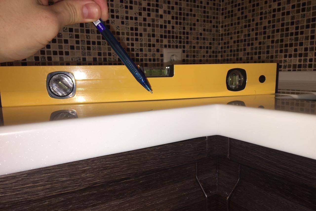 - точно обрезать необходимый фрагмент под форму и размеры столешницы;