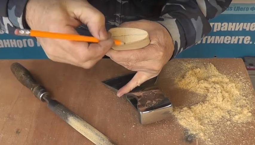 Для начала определить, какой край черенка более широкий — это и будет верх. На нем необходимо обрисовать контуры проушины, которые покажут излишки дерева для удаления, измерить ее глубину.