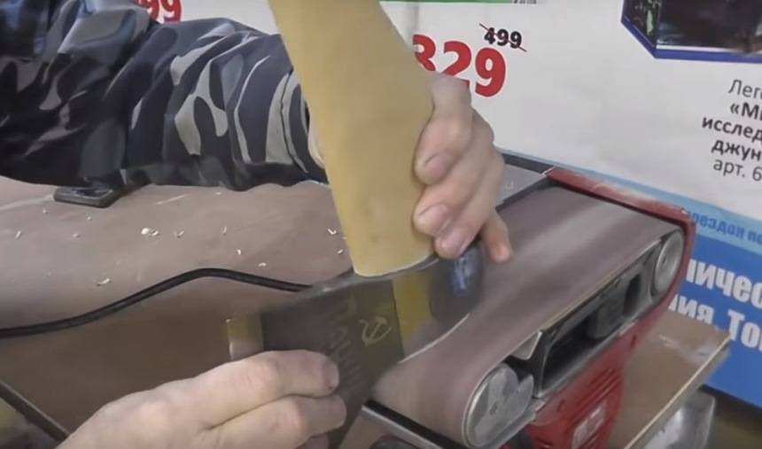- Если возможности затачивать топорик бруском нет, он заменяется куском фанеры, который обклеивается наждачной бумагой.