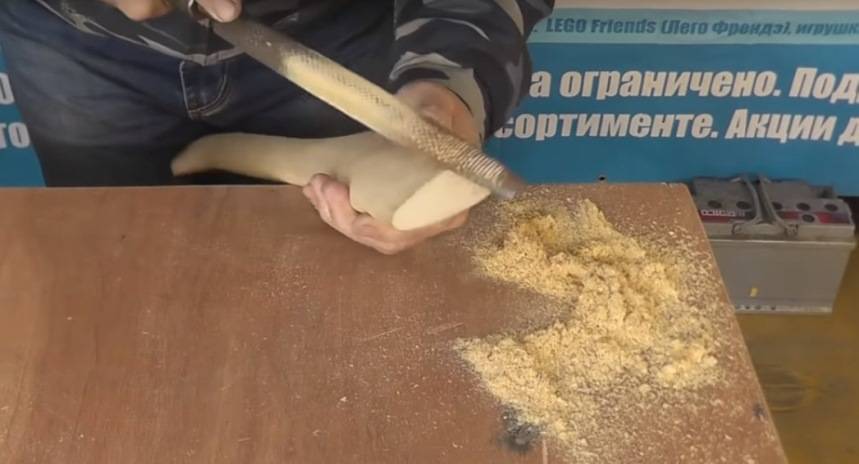 Не рекомендуется пользоваться напильником при доводке детали: это разрыхляет древесину и осложняет ее дальнейшую обработку. Лучшим способом считается использование мелкоабразивной наждачной бумаги с шлифовальной машинкой. Движение инструмента – вдоль волокон.