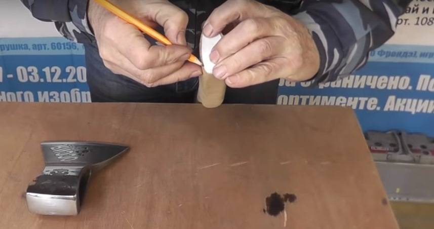 Первоначально на топорище необходимо сделать правильную разметку: