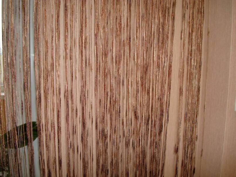 - Три денька шторы-нити должны висеть. Это нужно для того, чтоб они растянулась. Только так можно достигнуть того, что нити будут размещаться друг к другу строго вертикального и параллельного. Это дозволит сделать очень роскошный эффект.
