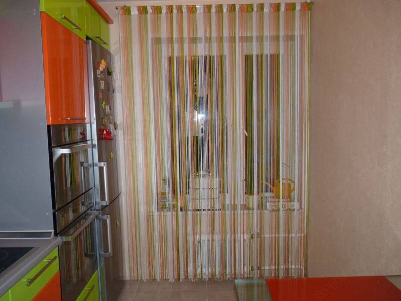 Нитяные шторы на кухне выглядят воздушно и по-домашнему. Они используются для украшения окна, дверного проёма, стены или люстры. Если заглянуть в историю, можно узнать, что шторы-нити пришли к нам из восточных стран, где с их помощью в жаркие дни оформляли дверной проход, дабы скрыть жилище от посторонних взглядов. В наше время их чаще всего производят из кисеи. тонкой, прозрачной ткани, затеняющей комнату и великолепно пропускающей воздух. Правильно подобранные занавески создают в помещении неповторимый уют.