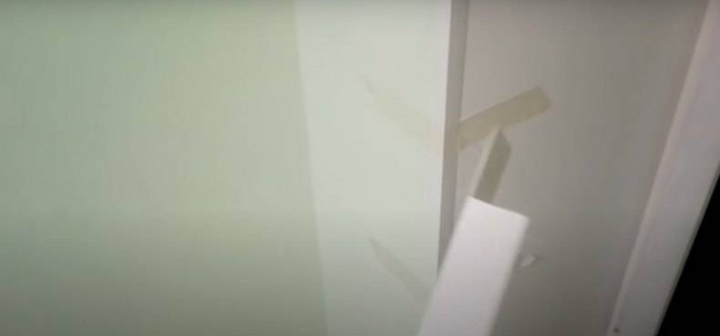 - Далее эти детали крепят при помощи строительного скотча, как со справой, так и с левой стороны откоса. Скотч крепиться таким образом, чтобы он был ниже верхнего откоса на 15-20 см. Затем измеряют крайние наружные точки верхнего откоса и на угловой его части;