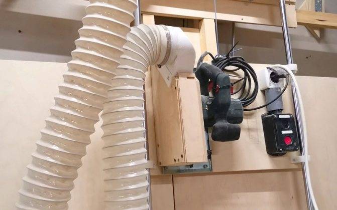 Стружкоотсос, без которого голова работника постоянно была в опилках от пиления