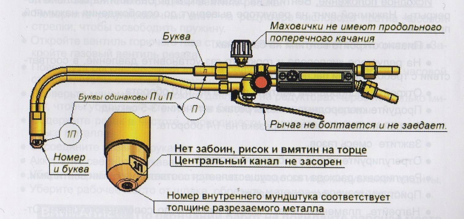 Еще до начала резки газом необходимо обследовать прибор, удостовериться, что пропановый резак находится в рабочем состоянии. Далее нужно выполнить следующие операции: