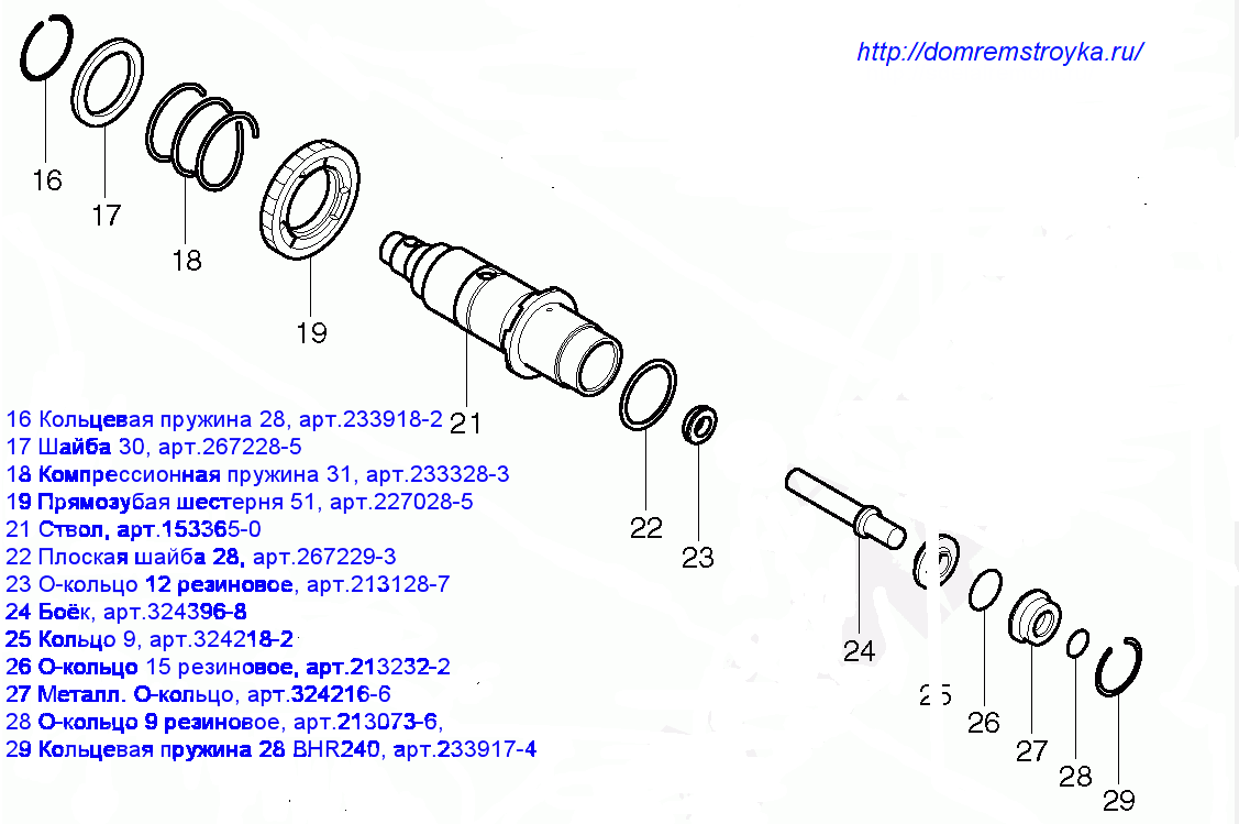 Чтобы разобрать сам вал поз.21 ударного механизма, надо со стороны вала установки патрона снять: