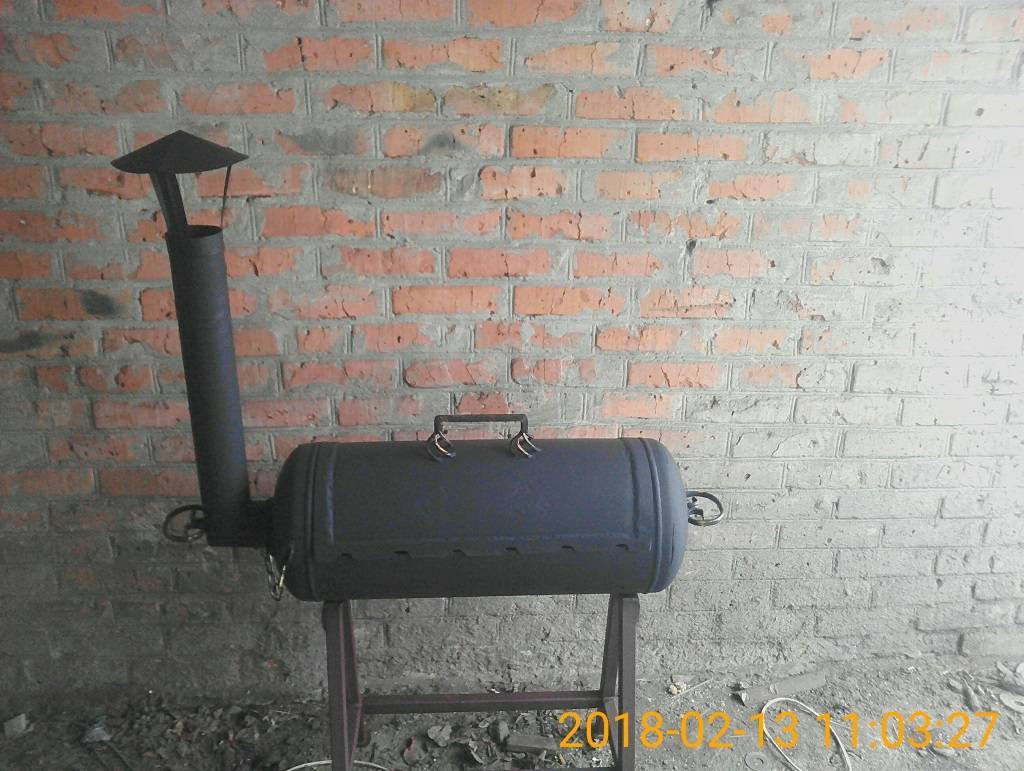 Для обеспечения лучшей тяги и чтобы дым не мешал находящимся рядом, можно к боковине мангала из баллона, трубы или бочки приделать дымоотводящую трубу. Работы это добавит, но не очень сильно. Зато пользоваться будет комфортнее: дым хорош на шашлыке, а дышать им совсем не хочется.